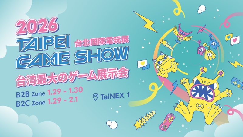 2026台北ゲームショウは1月29日~2月1日の間に、毎日9:00~17:00まで台北南港展示館ホール1にて開催されます。展示会はB2Bエリア(1月29~30日)とB2Cエリア(1月29日~2月1日)を含み、同時に現場およびオンラインでアジアパシフィックゲームフォーラム(1月29日~1月30日)も開催されます。本日より「日本語メディア登録システム」が開始致します。資格審査を経て、確認メールを順次発送致します。登録の締切日は202ˊ6年1月21日12:00(GMT+8)までです。資格審査未通過者に対しては、本システムからの別途の通知はありません。