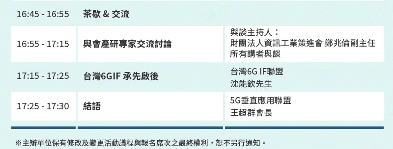五、各項通知服務、相關訊息之停止寄送,可透過訊息內容提供之取消訂閱連結通知。您可於上班時間聯繫計畫執行單位活動承辦人(電話(02)2577-4249,分機:362;或請按這裡)。就違反本個資聲明之行為,請按這裡反映。