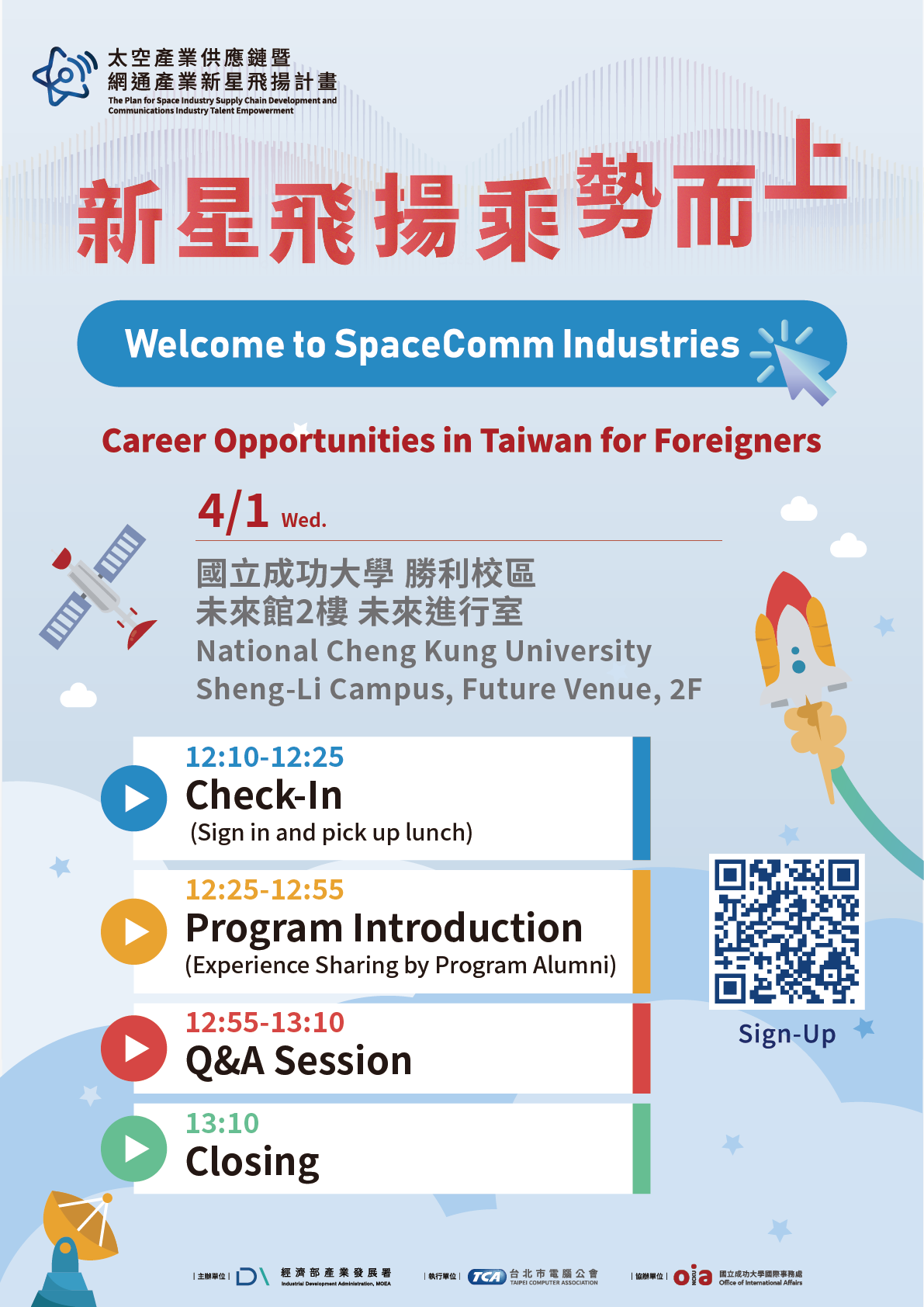 On behalf of Industrial Development Administration, Ministry of Economic Affairs , Taipei Computer Association (“TCA”) holds the event based on the project of The Plan For Space Industry Supply Chain Development and Communications Industry Talent Empowerment (“the Project”). Pursuant to the Personal Data Protection Act (“the Act”) and TCA’s privacy and confidentiality policies, we hereby inform you about the TCA’s privacy practices, and describe the disclosure of various personal data we may collect, use, and store from you with respect to your participation of this event (“the personal data”). By signing the form (or clicking “I Agree”), you agree to the following: