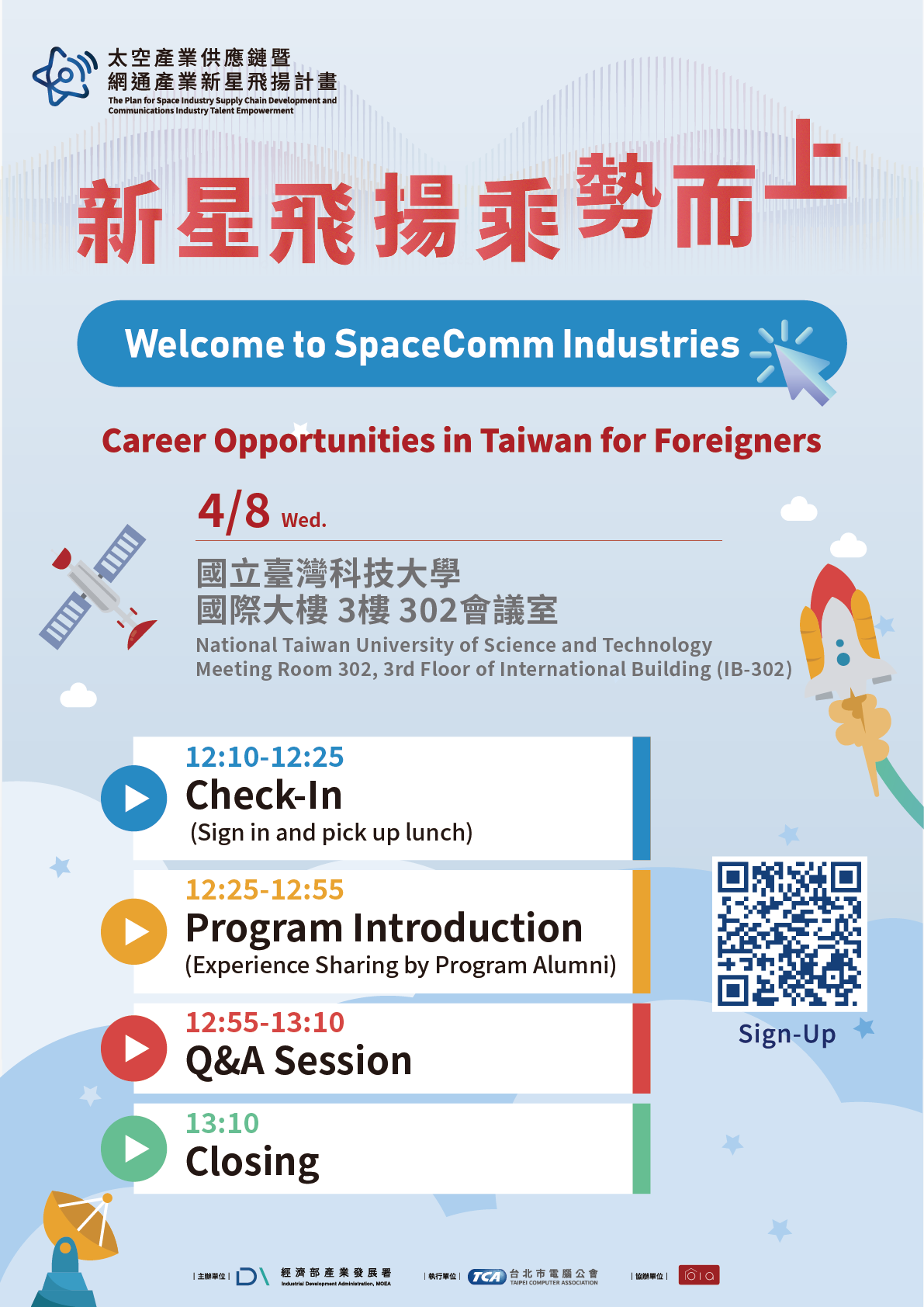 On behalf of Industrial Development Administration, Ministry of Economic Affairs , Taipei Computer Association (“TCA”) holds the event based on the project of The Plan For Space Industry Supply Chain Development and Communications Industry Talent Empowerment (“the Project”). Pursuant to the Personal Data Protection Act (“the Act”) and TCA’s privacy and confidentiality policies, we hereby inform you about the TCA’s privacy practices, and describe the disclosure of various personal data we may collect, use, and store from you with respect to your participation of this event (“the personal data”). By signing the form (or clicking “I Agree”), you agree to the following: