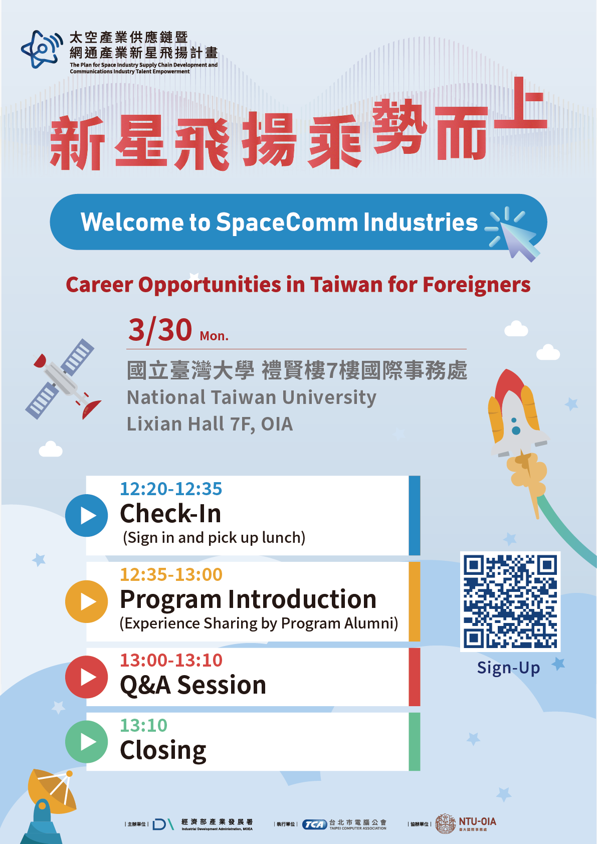 On behalf of Industrial Development Administration, Ministry of Economic Affairs , Taipei Computer Association (“TCA”) holds the event based on the project of The Plan For Space Industry Supply Chain Development and Communications Industry Talent Empowerment (“the Project”). Pursuant to the Personal Data Protection Act (“the Act”) and TCA’s privacy and confidentiality policies, we hereby inform you about the TCA’s privacy practices, and describe the disclosure of various personal data we may collect, use, and store from you with respect to your participation of this event (“the personal data”). By signing the form (or clicking “I Agree”), you agree to the following: